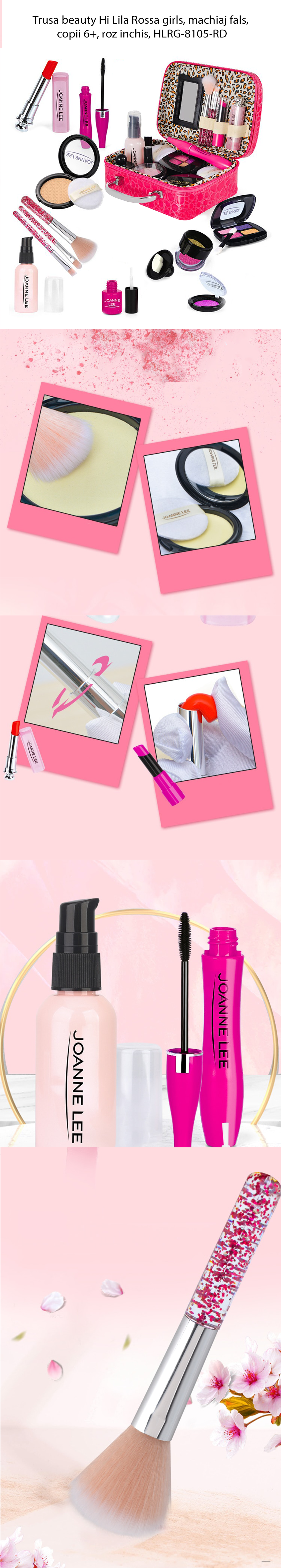 Trusa beauty Hi Lila Rossa girls, machiaj fals, copii 6+, roz inchis, HLRG-8105-RD