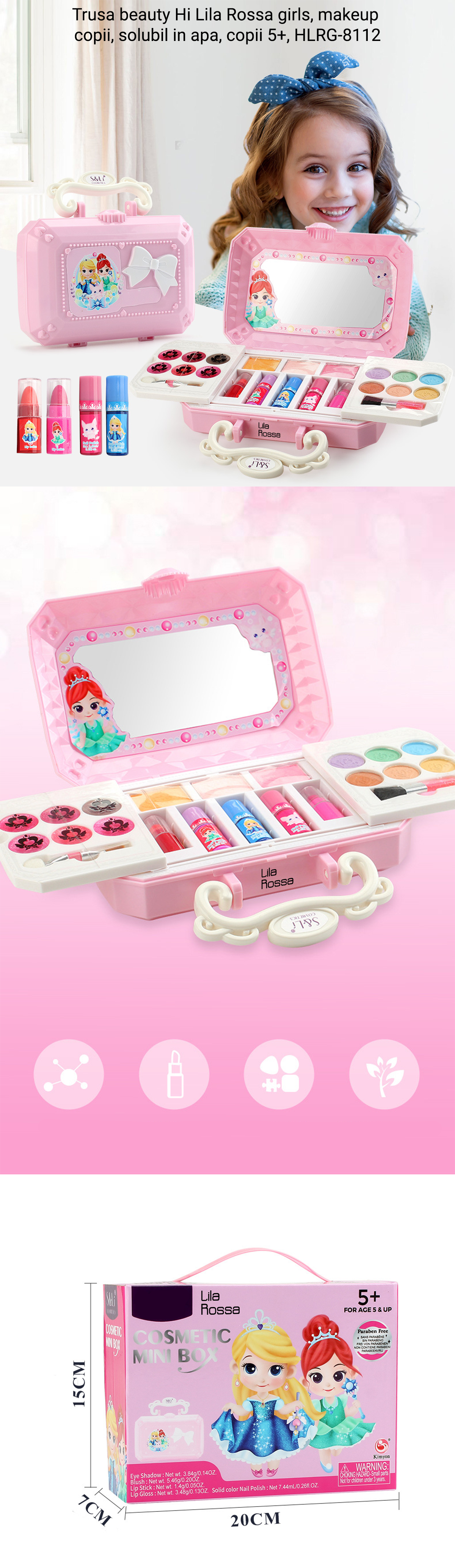 Trusa beauty Hi Lila Rossa girls, makeup copii, solubil in apa, copii de peste 5 ani, HLRG-8112