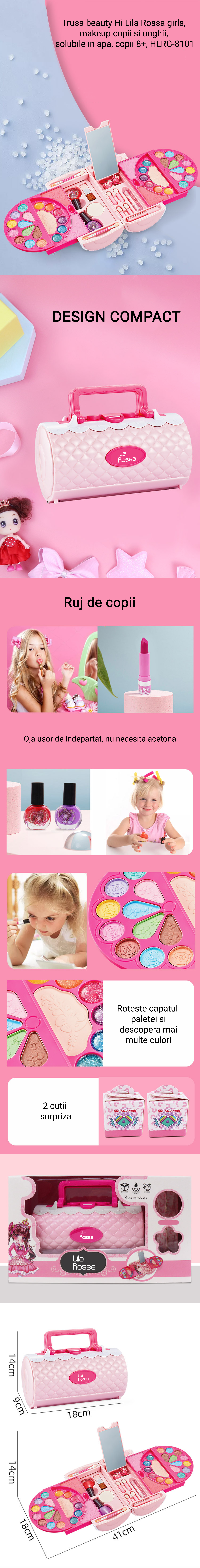 Trusa beauty Hi Lila Rossa girls, makeup copii si unghii, solubile in apa, copii de peste 8 ani, HLRG-8101