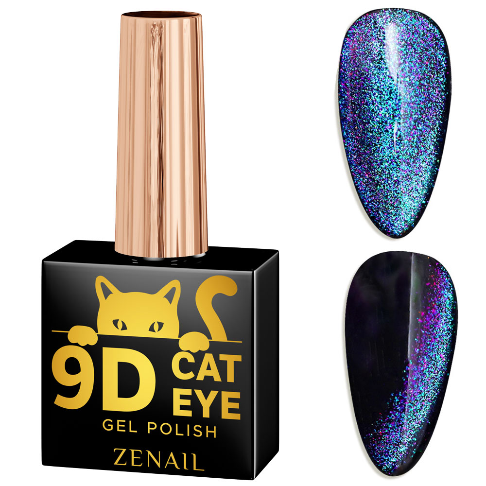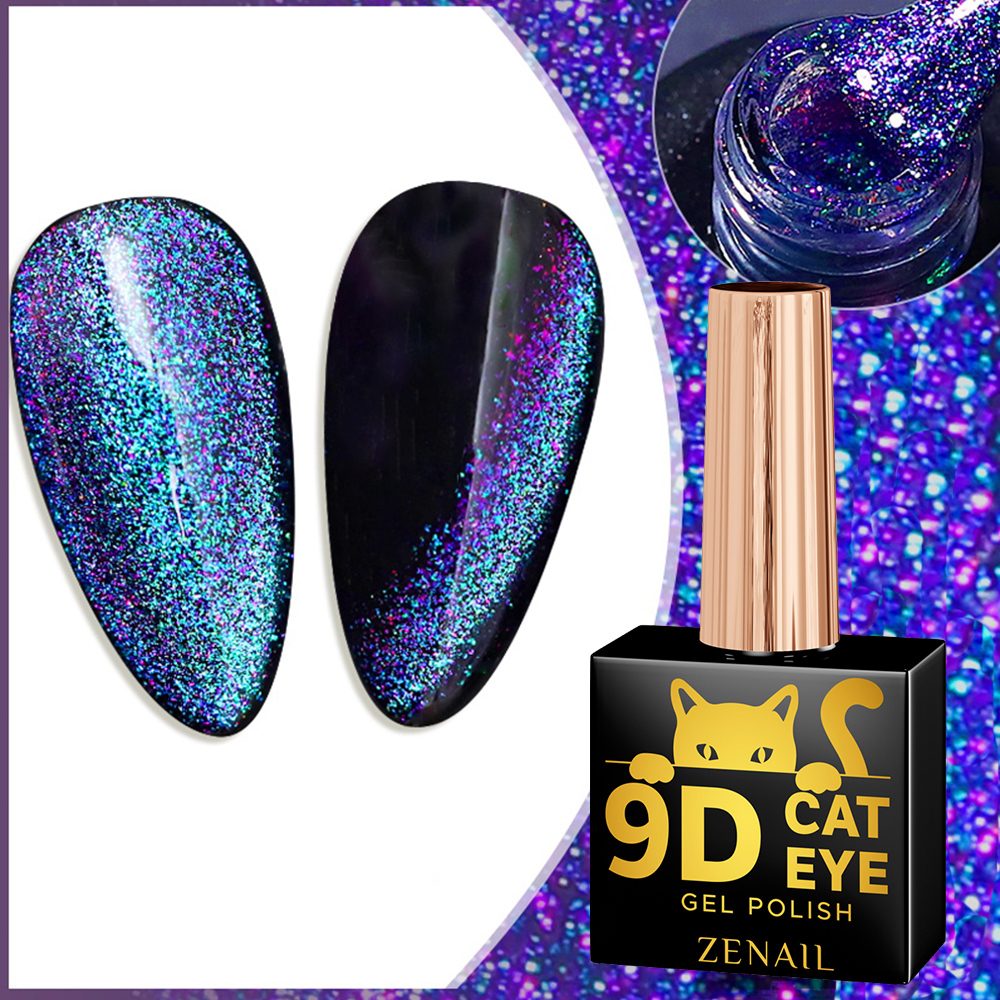 Ochii vor fi hipnotizati de efectul 9D Cat Eye de pe unghiile tale. Contine particule magnetice care creeaza un efect de cat eye cu ajutorul unui magnet pentru manichiura. Efectul poate fi controlat prin directia in care magnetul este folosit, oferind flexibilitate in crearea de modele unice. Acest tip de oja semipermanenta permite unghiilor sa aiba un aspect unicat si stralucitor, imitand forma unui ochi de pisica.